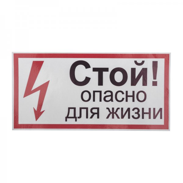 Знак электробезопасности (наклейка) «Стой! Опасно для жизни» — это информационный знак, который сообщает об опасности поражения электротоком. Как правило, такой знак размещают на дверях и стенах помещений, на дверцах электрощитовых шкафов. Такие наклейки предназначены для предупреждения и информирования окружающих, а также для организации мест работы электромонтажных бригад, несут дополнительную информационную нагрузку. Знак изготовлен на основе самоклеящейся пленки, предназначенной для информационных знаков на улице и в помещениях.