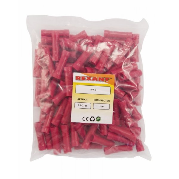 Изолированный соединитель REXANT состоит из двух компонентов: металлической бесшовной трубки и защитного изолятора, закрывающего коннектор полностью. Цельнотянутая металлическая трубка (контактная часть) изготовлена из латуни, с поверхностным электролитическим лужением, имеет посередине ограничительную высечку, для равномерного заведения проводов с обеих сторон. Изолятор гильзы изготовлен из поливинилхлорида (ПВХ), надежно защищающий контактную часть от внешних воздействий, а человека от поражения электрическим током. Обжатие производится путем механической деформации специальными пресс-клещами (ht-301 H, ht-301 N, ht-301 W) поверх защитного изолятора. Цвет изолятора красный.