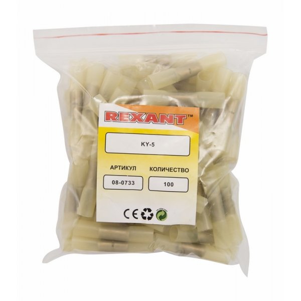 Изолированный термоусаживаемый соединитель REXANT состоит из двух компонентов: металлической бесшовной трубки и защитного изолятора, закрывающего коннектор полностью. Цельнотянутая металлическая трубка (контактная часть) изготовлена из латуни, с поверхностным электролитическим лужением, имеет посередине ограничительную высечку, для равномерного заведения проводов с обеих сторон. Термоусаживаемый изолятор изготовлен из поперечно сшитого нейлона с внутренним клеевым слоем и коэффициентом усадки 4:1, который обеспечит полную герметизацию соединения и надежно защитит контактную часть от внешних воздействий, а человека от поражения электрическим током. Полупрозрачный корпус позволяет контролировать заведение жил. Обжатие производится путем механической деформации специальными пресс-клещами (ht-301 H, ht-301 N, ht-301 W) поверх защитного изолятора. Цвет изолятора желтый.