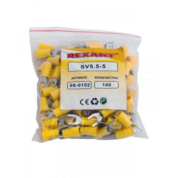 Изолированный вилочный наконечник REXANT состоит из двух компонентов: металлического коннектора (вилка) и защитного изолятора, закрывающего место обжима. Металлический коннектор изготовлен из латуни, с поверхностным электролитическим лужением (возможно использование в условиях повышенной влажности), а изолятор клеммы из поливинилхлорида (ПВХ), который надежно защищает место обжима кабеля.