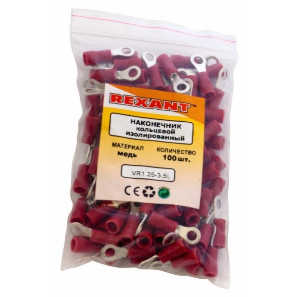 Наконечник кольцевой изолированный (НКИ ø 3.7 мм) 0.5-1.5 мм² REXANT предназначен для создания качественного подключения электрооборудования, которое осуществляется через контактное соединение на основе винтовой фиксации. Такая клемма используется для оконцовывания многожильных медных проводов при монтаже мобильных электрических контактных соединений на подвижном составе (автомобиле-, вагоно-, самолето- и судостроении) или в других местах, где важна надежность соединения (к примеру, телефонное или климатическое оборудование).