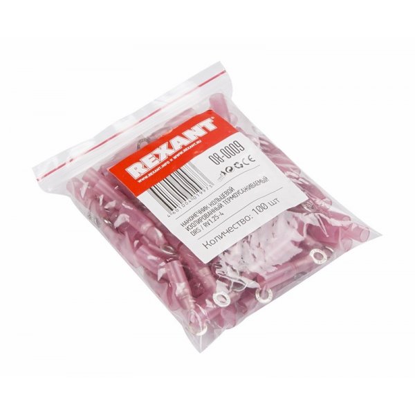 Изолированный кольцевой наконечник REXANT состоит из двух компонентов: металлического коннектора и защитного изолятора. Главной отличительной особенностью такого наконечника является термоусаживаемый изолятор клеммы с клеевым краем, что обеспечит защиту места обжима кабеля от попадания влаги и грязи. Металлический коннектор изготовлен из латуни, с поверхностным электролитическим лужением. Обжатие производится специальными пресс-клещами (ht-301 H арт.12-3014, 12-3014; ht-301 N арт.12-3116; ht-301 W арт.12-3021, 12-3021-4) поверх защитного изолятора. После обжатия при нагревании наконечника происходит усадка термоизоляционной трубки на кабеле — это обеспечит герметичность соединения. Цвет изолятора прозрачно-красный.