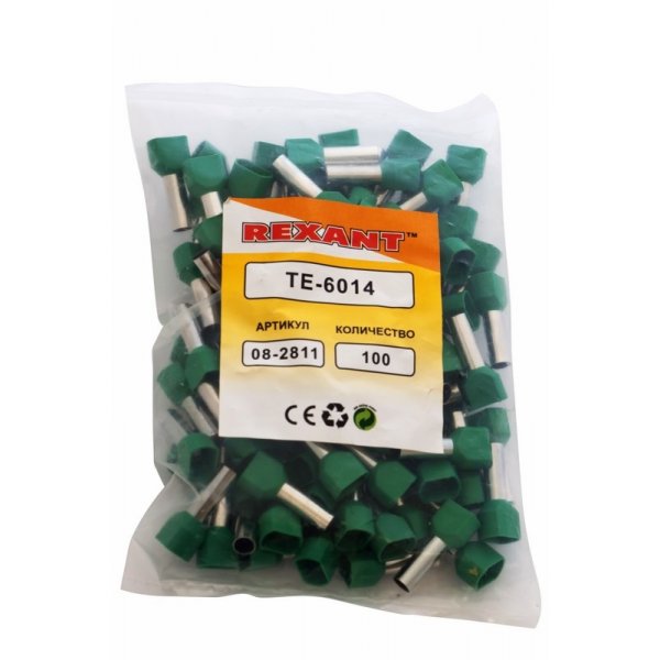 Наконечник штыревой втулочный изолированный (НШВИ F-14 мм) 2х6 мм² зеленый REXANT предназначен для создания быстрого и качественного подключения различного электрооборудования и монтажа электросетей. Такой современный способ подготовки кабеля к соединению заменяет процесс облуживания или скрутки многожильных медных проводов, формируя целостное окончание кабеля с последующим подключением промышленного или бытового электрооборудования.