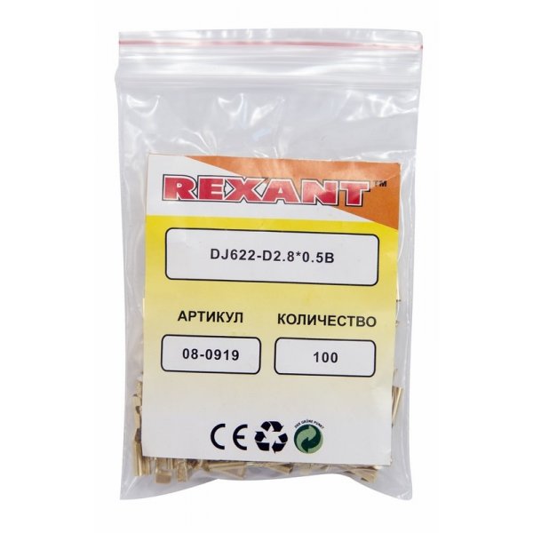 Клемма плоская неизолированная (гнездо) REXANT изготовлена из латуни. Обжатие производится специальными пресс-клещами (ht-202; ht-230; ht-301) по жиле и по изоляции, что обеспечит максимальную прочность соединения с проводом. Каждая клемма имеет фиксатор для более прочного механического соединения с штекерным разъемом.