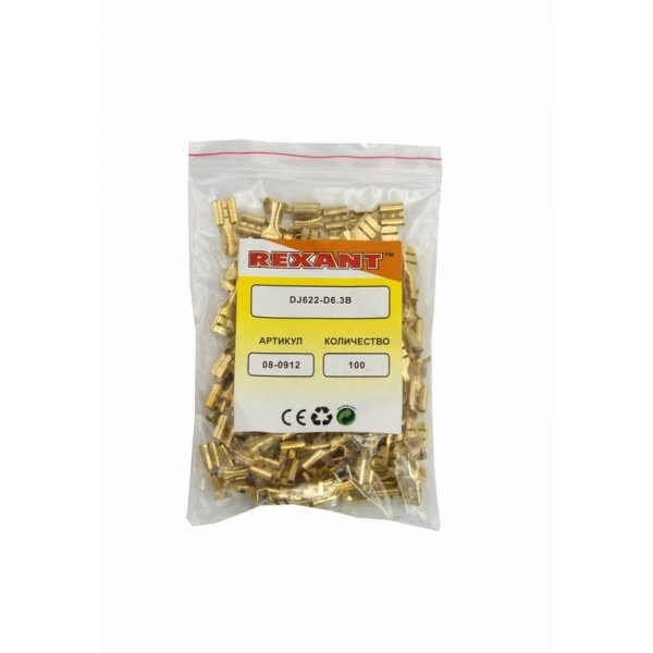 Клемма плоская неизолированная (гнездо) REXANT изготовлена из латуни.