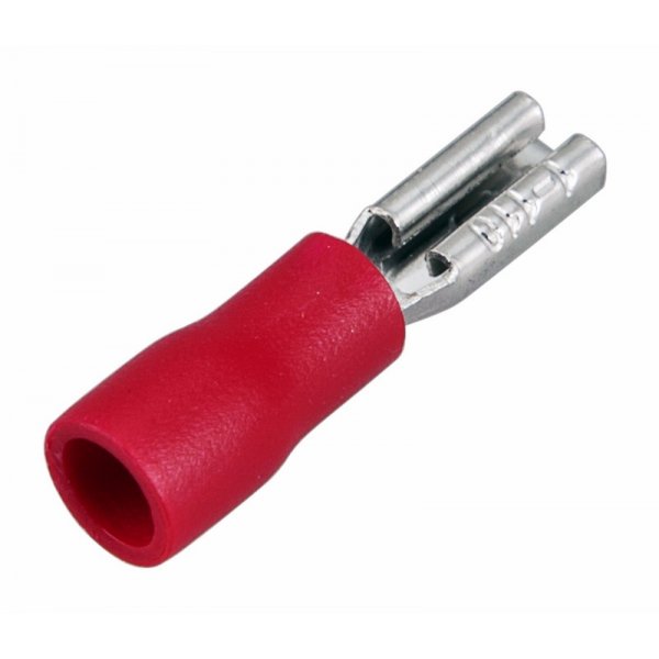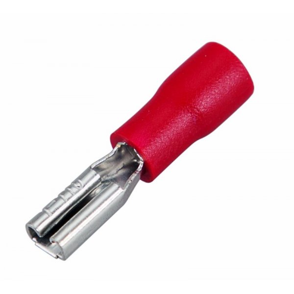 Клемма плоская изолированная (КПИ гнездо - 3.8 мм) 0.5-1.5 мм² (fdD1.25-110(5)) REXANT предназначена для создания качественного подключения электрооборудования или соединения проводов между собой, которое при необходимости возможно разъединить без лишних усилий. Такая клемма используется для оконцовывания многожильных медных проводов при монтаже мобильных электрических контактных соединений на подвижном составе (автомобиле-, вагоно-, самолето- и судостроении).