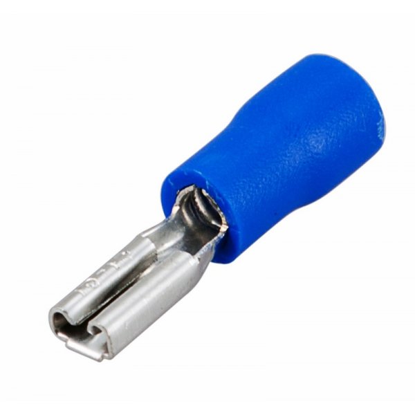 Изолированная плоская клемма REXANT состоит из двух компонентов: металлического коннектора (гнездо) и защитного изолятора. Металлический коннектор изготовлен из латуни, с поверхностным электролитическим лужением, а изолятор клеммы из поливинилхлорида (ПВХ), который надежно защищает место обжима кабеля. Обжатие производится специальными пресс-клещами (ht-301 H арт.12-3014, 12-3014; ht-301 N арт.12-3116, 12-3117, 12-3016, 12-3016-4; ht-301 W арт.12-3021, 12-3021-4, 12-3121) поверх защитного изолятора. Каждая клемма имеет фиксатор для более прочного механического соединения с штекерным разъемом. Цвет изолятора синий.