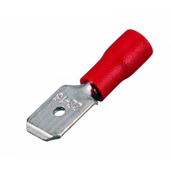 Изолированная плоская клемма REXANT состоит из двух компонентов: металлического коннектора (штекер) и защитного изолятора. Металлический коннектор изготовлен из латуни, с поверхностным электролитическим лужением, а изолятор клеммы из поливинилхлорида (ПВХ), который надежно защищает место обжима кабеля. Обжатие производится специальными пресс-клещами (ht-301 H арт.12-3014, 12-3014; ht-301 N арт.12-3116; ht-301 W арт.12-3021, 12-3021-4) поверх защитного изолятора. Каждая клемма имеет отверстие, служащее фиксатором замкового типа для более прочного механического соединения с гнездовым разъемом. Цвет изолятора красный.