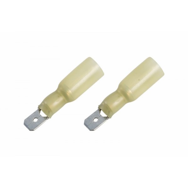 Клемма плоская изолированная термоусаживаемая (КПИт штекер - 6.35 мм) 4-6 мм² REXANT предназначена для создания качественного подключения электрооборудования или соединения проводов между собой, которое при необходимости, возможно разъединить без лишних усилий. Такая клемма используется для оконцовывания многожильных медных проводов при монтаже мобильных электрических контактных соединений на подвижном составе (автомобиле-, вагоно-, самолето- и судостроении) или в других местах, где важна надежность соединения (к примеру, телефонное или климатическое оборудование).