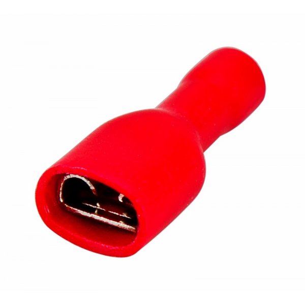 Полностью изолированная плоская клемма REXANT состоит из двух компонентов: металлического коннектора (гнездо) и защитного изолятора, полностью закрывающий штекер. Металлический коннектор изготовлен из латуни, с поверхностным электролитическим лужением, а изолятор клеммы из поливинилхлорида (ПВХ), который надежно защищает место обжима кабеля и контактную часть. Цвет изолятора красный. Обжатие производится специальными пресс-клещами (ht-301) поверх защитного изолятора. Каждая клемма имеет фиксатор замкового типа для более прочного механического соединения с штекерным разъемом.
