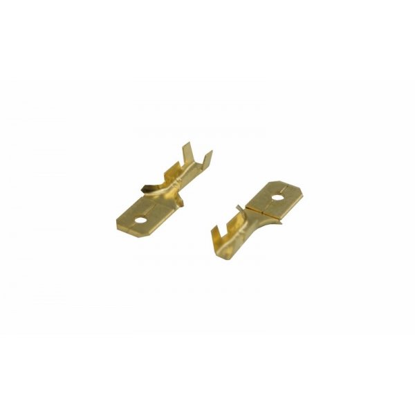 Клемма плоская неизолированная (штекер) REXANT изготовлена из латуни. Обжатие производится специальными пресс-клещами (к примеру, ht-202 арт.12-3031 и 12-3032; ht-230 арт.12-3101 и 12-3001; ht-301 арт.12-3020) по жиле и по изоляции, что обеспечит максимальную прочность соединения с проводом. Размер контакта определяется шириной клеммы. Каждая клемма имеет отверстие, служащее фиксатором замкового типа с гнездовым разъемом.