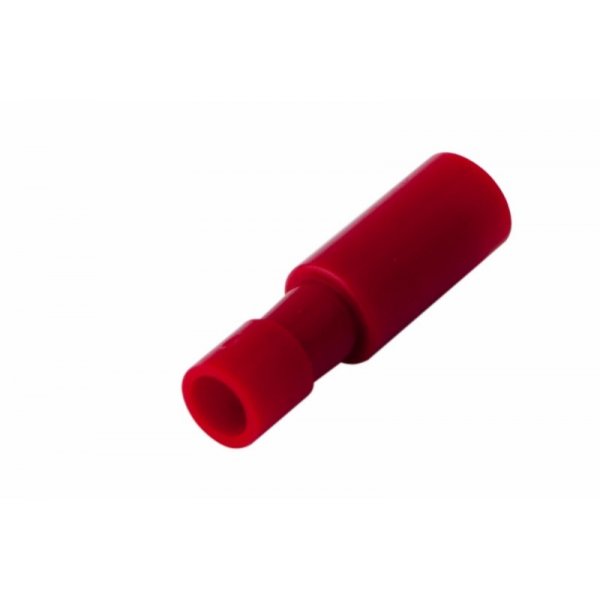 Клемма штекерная полностью изолированная (гнездо ø 4 мм) 0.5-1.5 мм² красная REXANT предназначена для создания качественного «мобильного» подключения электрооборудования или соединения проводов между собой, которое при необходимости возможно разъединить без лишних усилий. Такая клемма используется для оконцовывания многожильных медных проводов при монтаже мобильных электрических контактных соединений на подвижном составе (автомобиле-, вагоно-, самолето- и судостроении). Отличительной особенностью такой клеммы является создание максимально изолированного соединения в сочетании с соответствующим штекером. Изолированная штекерная клемма REXANT состоит из двух компонентов: металлического коннектора (гнездо) и защитного изолятора, закрывающего коннектор полностью. Металлический коннектор изготовлен из латуни, с поверхностным электролитическим лужением, а изолятор клеммы из поливинилхлорида (ПВХ), надежно защищающий место обжима кабеля и контактную часть от физических воздействий, а человека от поражения электрическим током. Обжатие производится специальными пресс-клещами (ht-301 H, ht-301 N, ht-301 W) поверх защитного изолятора. Цвет изолятора красный.