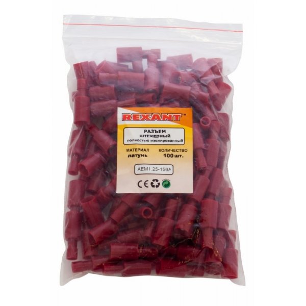 Изолированная штекерная клемма REXANT состоит из двух компонентов: металлического коннектора (штекер) и защитного изолятора, закрывающего коннектор полностью. Металлический коннектор изготовлен из латуни, с поверхностным электролитическим лужением, а изолятор клеммы из поливинилхлорида (ПВХ), надежно защищающий место обжима кабеля и контактную часть от физических воздействий, а человека от поражения электрическим током. Обжатие производится специальными пресс-клещами (ht-301 H, ht-301 N, ht-301 W) поверх защитного изолятора. Цвет изолятора красный.