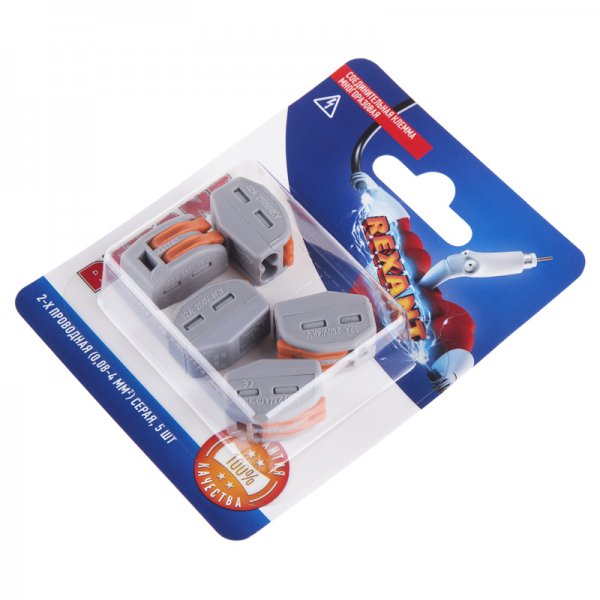 Соединительная клемма многоразовая, 2-х проводная, серая (0,08-4 мм²), (5шт.) REXANT