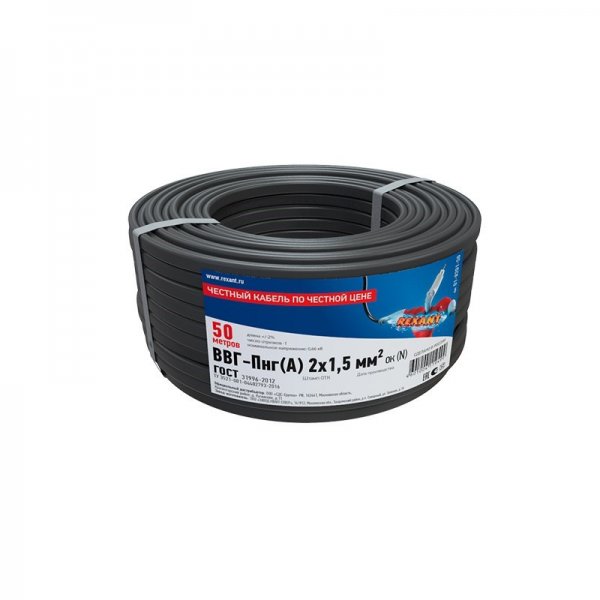 Кабель ВВГ-Пнг(А) 2x1,5 мм², длина 50 метров, ГОСТ REXANT