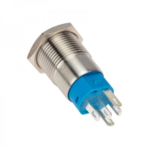 Кнопка антивандальная Ø16 250В Б/Фикс (2с) ON-OFF красная КОЛОКОЛ предназначена для коммутации электрических цепей напряжением до 250В путем включения-выключения питающего провода. Металлические кнопки применяются в местах, где существует большой риск их повреждения (на различных производственных линиях, в лифтовых кабинах, около входной двери и т.д.), а также для декоративного оформления панелей управления. Главными отличительными особенностями такой кнопки являются металлическое исполнение и неуязвимость контактной группы, что обеспечит ей долговечное функционирование. Изделие состоит из двух основных частей - лицевой части (головки) и контактной, и имеет пружинный возвратный механизм. Монтаж осуществляется без применения винтов на плоских панелях толщиной от 0.5мм до 10мм. Подключение проводов осуществляется с помощью винтовых зажимов, пайки или разъемом.