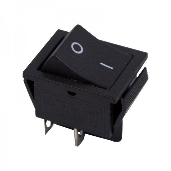 Выключатель клавишный 250V 15А (4с) ON-OFF черный предназначен для коммутации электрических цепей переменного тока напряжением до 250В. Клавишные (Рокерные) выключатели применяются в качестве комплектующих изделий различного электрооборудования (в сетевых фильтрах и удлинителях, аудио-оборудовании, блоках питания, электроустановках на различных производствах, автомобилях, и многих других местах). Такой клавишный переключатель имеет два положения. Принцип действия основан на перемещении клавиши в одну из позиций. Для переключения в нужное положение требуется приложить некоторые усилия на клавишу. Монтаж осуществляется без применения винтов на плоских панелях толщиной от 0.8мм до 3мм. Подключение контактов осуществляется плоской клеммой 6.6мм, либо с помощью пайки.