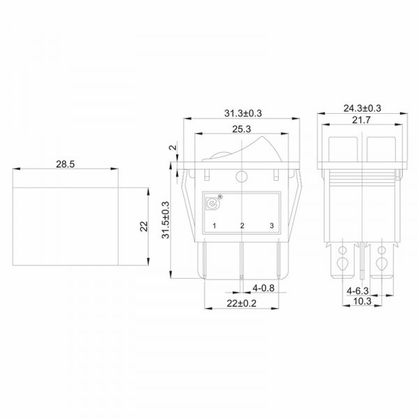 Выключатель клавишный 250V 15А (6с) ON-OFF черный с подсветкой ДВОЙНОЙ предназначен для коммутации электрических цепей переменного тока напряжением до 250В. Клавишные (Рокерные) выключатели применяются в качестве комплектующих изделий различного электрооборудования (в сетевых фильтрах и удлинителях, аудио-оборудовании, блоках питания, электроустановках на различных производствах, автомобилях, и многих других местах). Такой клавишный переключатель имеет два положения и две клавиши, что позволит раздельно коммутировать контактные группы. Принцип действия основан на перемещении клавиши в одну из позиций. Для переключения в нужное положение требуется приложить некоторые усилия на клавишу. Монтаж осуществляется без применения винтов на плоских панелях толщиной от 0.8мм до 3мм. Подключение контактов осуществляется плоской клеммой 6.6мм, либо с помощью пайки.
