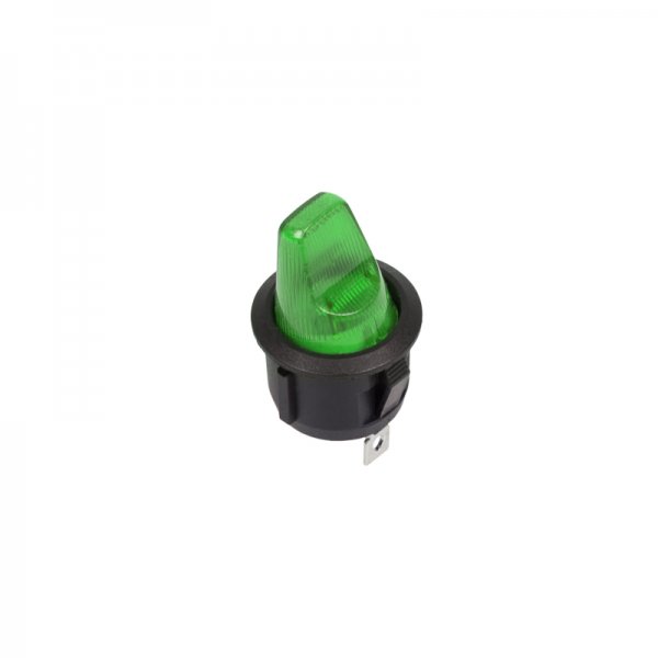 Выключатель клавишный круглый 250 V 16 А (3с) ON-OFF зеленый с подсветкой предназначен для коммутации электрических цепей напряжением 250 В. Клавишные (рокерные) выключатели применяются в качестве комплектующих изделий различного электрооборудования (аудиооборудовании, блоках питания, электроустановках на различных производствах, автомобилях и многих других местах).