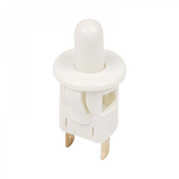 Выключатель-кнопка 250V 2.5А (2с) ON-(OFF) Б/Фикс белый (мебельная) предназначена для коммутации электрических цепей переменного тока напряжением до 250В, а именно для управления освещением, путем включения-выключения питающего провода. Кнопки применяются в качестве комплектующих изделий при сборке мебели. Изделие состоит из двух основных частей - лицевой части (головки) и контактной, и имеет пружинный возвратный механизм. Монтаж осуществляется без применения винтов на плоских панелях. Подключение контактов осуществляется плоской клеммой, либо с помощью пайки. Основные характеристики: Номинальное напряжение: 250В; Номинальный ток: 2.5A (250VAC); Тип переключения: ON-(OFF); Количество контактных групп: 1; Количество контактов в контактной группе: 2; Функция фиксации положений: отсутствует; Индикатор коммутационных положений: отсутствует; Установочный диаметр: 19,2 мм; Рабочая температура: от -25℃ до +85℃; Ресурс: 10 000 циклов. Преимуществами использования данного изделия является надежность, быстрота и удобство монтажа.