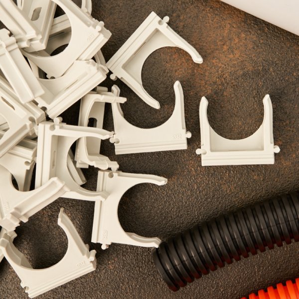 Крепеж для гофры, гофротрубы (клипса для гофротрубы), труб ПВХ и кабеля изготовлен из качественных материалов по передовым технологиям пластикового литья. Оптимальная форма с грамотно расположенными рёбрами жесткости обеспечивают надежный захват трубы и достаточную жесткость удержания в течении длительного времени. Качественный пластик и прочностные рёбра жесткости не дают ломаться зажиму на холоде и слабнуть на жаре. Зажимы противостоят ультрафиолетовым излучениям, солям, кислой среде и алкалинам.