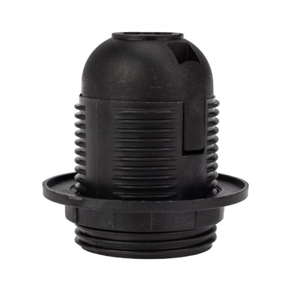Патрон пластиковый термостойкий подвесной с кольцом Е27 REXANT служит для закрепления ламп в осветительных приборах или для монтажа временного освещения на строительных и отделочных площадках. Изделие выполнено в черном цвете. Термопластиковый корпус не подвержен появлению коррозии. Контактная группа выполнена из высококачественных материалов.