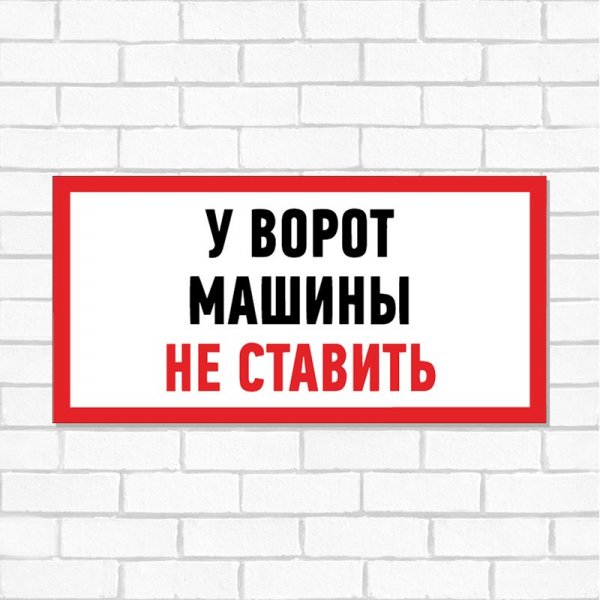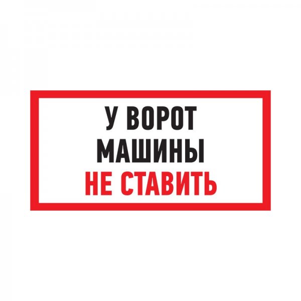 Знак информационный (табличка на ПВХ подложке) «У ворот машины не ставить!» предназначен для размещения на ограждениях, стенах строений. Информирует о том, что на данной территории запрещена парковка автомобилей.