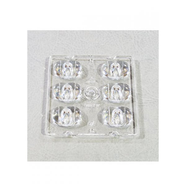 S01.01.01.131_SS-50X50-6-T2M, линза 50х50мм, 6 LED, 90х140 градусов, для 5050, PC, прозрачная, без у