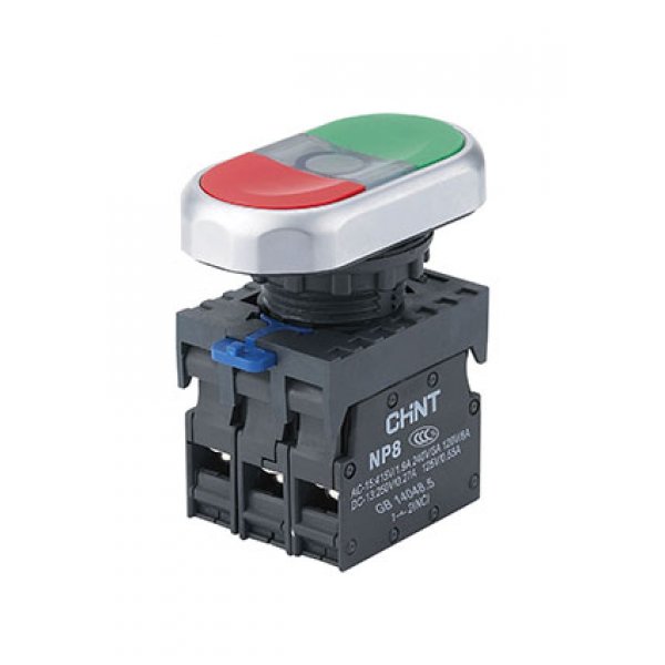 667174, Двойная кнопка NP8-11SD 1НО+1НЗ красная AC110В-220В(LED) IP65