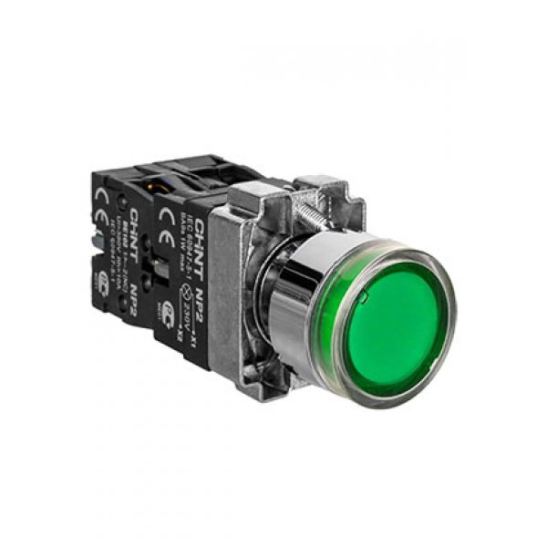 573831, Кнопка управления NP2-BW3361 1НО зеленая AC/DC230В(LED) IP40