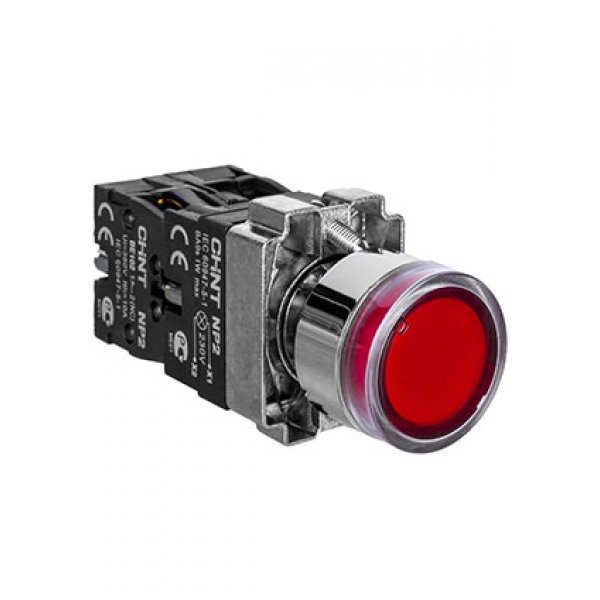 574267, Кнопка управления NP2-BW3465 1НО+1НЗ красная AC/DC230В(LED) IP40