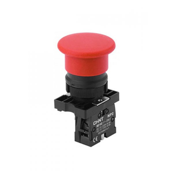 574820, Кнопка управления "Грибок" 40мм (2) с самовозвратом NP2-EC42 без подсветки красная 1НЗ