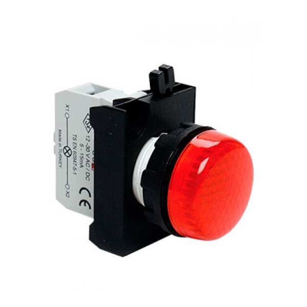 CP0K0XK, Арматура сигнальная красная со светодиодом 100-250 В перем. тока