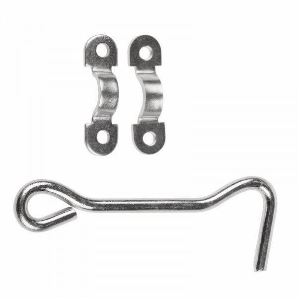 Назначение-для замыкания дверей. Комплектация: 1 крючок, 2 накладки. Цинк.