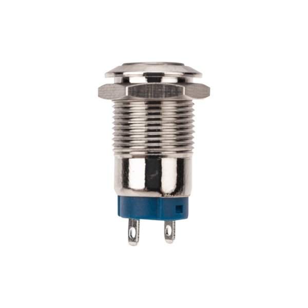 Кнопка антивандальная Ø12 Фикс (2с) ON-OFF выпуклая предназначена для коммутации электрических цепей напряжением до 250В путем включения-выключения питающего провода. Металлические кнопки применяются в местах, где существует большой риск их повреждения (на различных производственных линиях, в лифтовых кабинах, около входной двери и т.д.), а также для декоративного оформления панелей управления. Главными отличительными особенностями такой кнопки являются металлическое исполнение и неуязвимость контактной группы, что обеспечит ей долговечное функционирование. Изделие состоит из двух основных частей - лицевой части (головки) и контактной, и имеет пружинный возвратный механизм. Монтаж осуществляется без применения винтов на плоских панелях толщиной от 0.5мм до 5мм. Подключение проводов осуществляется с помощью пайки.