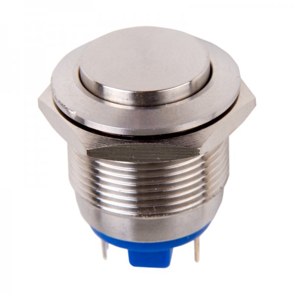 Кнопка антивандальная Ø19 Б/Фикс (2с винт) (ON)-OFF выпуклая предназначена для коммутации электрических цепей переменного тока напряжением до 250В путем включения-выключения питающего провода. Такие кнопки применяются в местах, где существует большой риск их повреждения (на различных производственных линиях, в лифтовых кабинах, около входной двери и т.д.). Главными отличительными особенностями антивандальной кнопки являются металлическое исполнение и неуязвимость контактной группы, что обеспечит ей долговечное функционирование. Изделие состоит из двух основных частей - лицевой части (головки) и контактной, и имеет пружинный возвратный механизм. Монтаж осуществляется без применения винтов на плоских панелях толщиной от 0.5мм до 10мм. Подключение проводов осуществляется с помощью винтовых зажимов.