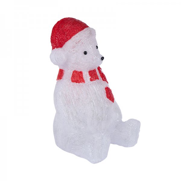 Акриловая светодиодная фигура "Медвежонок в красном колпаке" высотой 56 см, светящаяся более чем 200 ярких диодов, выполнена по специальной технологии нанесения акрила имитируя шерстяной покров реального животного. Новинка этого сезона позволит Вам создать ту самую, настоящую новогоднюю атмосферу и принести сотни радостных улыбок.