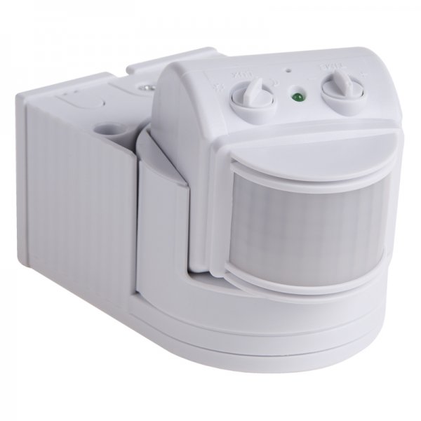 Датчики предназначены для автоматического включения и выключения нагрузки в заданном интервале времени, в зависимости от наличия движущихся объектов в зоне обнаружения датчика и уровня освещенности. Принцип работы инфракрасных датчиков движения заключается в обнаружении изменений инфракрасного (теплового) излучения окружающих объектов. Каждый объект, имеющий температуру, испускает инфракрасное излучение, которое через систему линз или специальных вогнутых сегментированных зеркал попадает на расположенный внутри датчика движения чувствительный сенсор, регистрирующий это. Датчик движения настенный является одним из наиболее популярных типов датчиков движения, устанавливается на стену, угол обзора 180°. Данный датчик имеет степень пыле- и влагозащиты IP44. Угол обзора: 180° Напряжение: 220-240 В Мощность: 1200 Вт Порог освещенности: 10-2000 ЛК Дальность: до 12 м Выдержка включения: 10-420 сек Степень защиты: IP44 Диапазон рабочих температур: –25...+40 °С