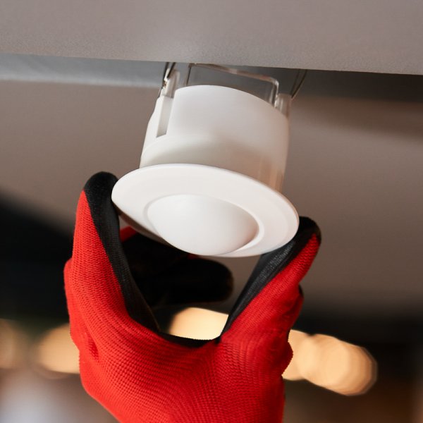 Встраивается в подвесной потолок с диаметром установочного отверстия 60 мм. Визуально датчик гармонично встраивается в обстановку и не выделяется на потолке.