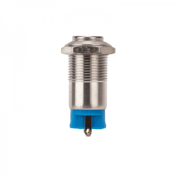 Кнопка антивандальная Ø12 Фикс (2с) ON-OFF выпуклая предназначена для коммутации электрических цепей напряжением до 250В путем включения-выключения питающего провода. Металлические кнопки применяются в местах, где существует большой риск их повреждения (на различных производственных линиях, в лифтовых кабинах, около входной двери и т.д.), а также для декоративного оформления панелей управления. Главными отличительными особенностями такой кнопки являются металлическое исполнение и неуязвимость контактной группы, что обеспечит ей долговечное функционирование. Изделие состоит из двух основных частей - лицевой части (головки) и контактной, и имеет пружинный возвратный механизм. Монтаж осуществляется без применения винтов на плоских панелях толщиной от 0.5мм до 5мм. Подключение проводов осуществляется с помощью пайки.