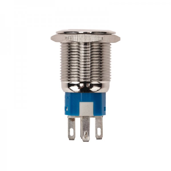 Выключатель-кнопка антивандальная Ø19 Фикс 12В (5с) ON-OFF/OFF-ON подсв/красная REXANT предназначена для коммутации электрических цепей напряжением до 12В путем включения-выключения питающего провода. Металлические кнопки применяются в местах, где существует большой риск их повреждения (на различных производственных линиях, в лифтовых кабинах, около входной двери и т.д.), а также для декоративного оформления панелей управления. Главными отличительными особенностями такой кнопки являются металлическое исполнение и неуязвимость контактной группы, что обеспечит ей долговечное функционирование. Изделие состоит из двух основных частей - лицевой части (головки) и контактной, и имеет пружинный возвратный механизм. Монтаж осуществляется без применения винтов на плоских панелях толщиной от 0.5мм до 10мм. Подключение проводов осуществляется с помощью винтовых зажимов, пайки или разъемом.