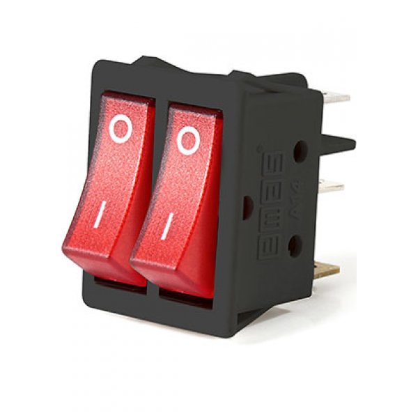 A12B1K11, Выключатель в чёрном корпусе две красные клавиши с подсветкой1НО+1НЗ