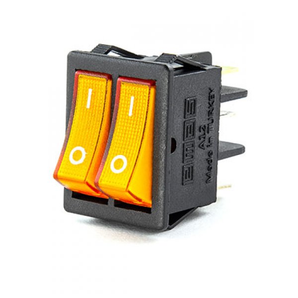 A12B1S11, Выключатель в чёрном корпусе две жёлтые клавиши с подсветкой1НО+1НЗ