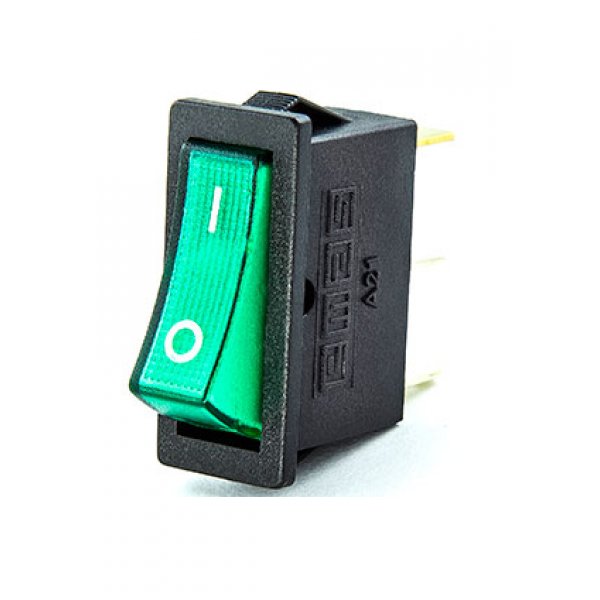 A21B1Y11, Выключатель в чёрном корпусе зелёная клавиша с подсветкой1НО
