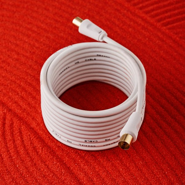 Шнур TV PLUG - TV JACK 5 м белый REXANT предназначен для передачи аналоговых аудио- и видеосигнала телевизионной сети к телевизору при подключении к телевизионной розетке, для подключения различного телекоммуникационного оборудования (ресиверы, ТВ-приставки и т. д.). Его также можно используют в качестве удлинителя высокочастотного кабеля для передачи ТВ сигнала от телевизионной антенны. C одной стороны шнура располагается штекер TV разъема, с другой — гнездо TV разъема.