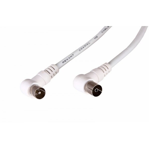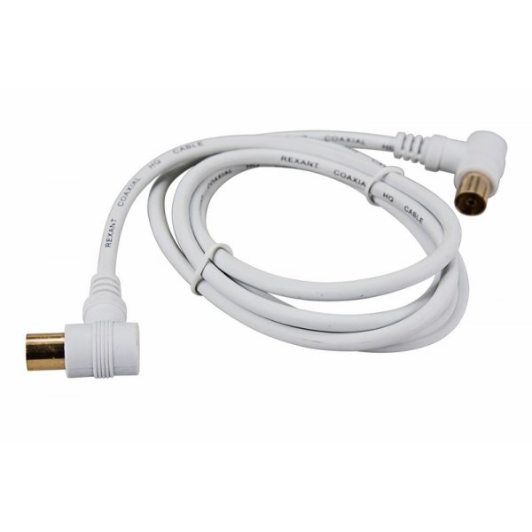 Шнур TV PLUG - TV JACK 3 м угловой белый REXANT предназначен для передачи аналоговых аудио- и видеосигнала телевизионной сети к телевизору при подключении к телевизионной розетке, для подключения различного телекоммуникационного оборудования (ресиверы, ТВ-приставки и т. д.). Его также можно используют в качестве удлинителя высокочастотного кабеля для передачи ТВ сигнала от телевизионной антенны. C одной стороны шнура располагается угловой штекер TV разъема, с другой — угловое гнездо TV разъема.