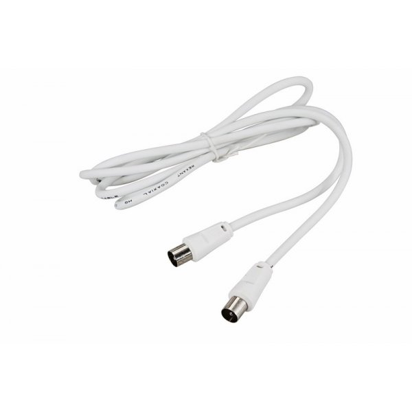 Шнур TV Plug - TV Plug 1.5 м белый REXANT предназначен для передачи аналоговых аудио- и видеосигнала телевизионной сети к телевизору при подключении к телевизионной розетке, для подключения различного телекоммуникационного оборудования (ресиверы, ТВ-приставки и т. д.). Его также можно используют в качестве удлинителя высокочастотного кабеля для передачи ТВ сигнала от телевизионной антенны. C двух сторон шнура располагаются штекеры TV разъема. Корпус разъемов выполнен из качественного, легкого и прочного пластика. Контакты никелированы и обеспечивают высокий уровень передачи сигнала к оборудованию. Цвет шнура белый, длина составляет 1.5 метра.