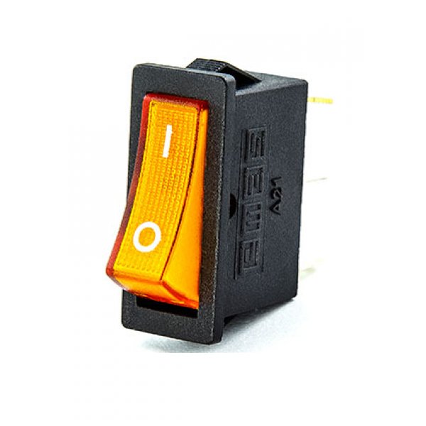 A21B1S11, Выключатель в чёрном корпусе жёлтая клавиша с подсветкой 1НО